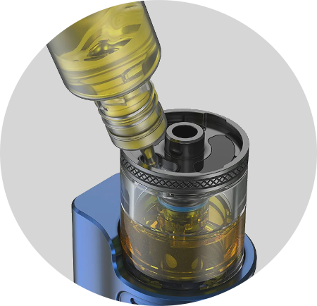 Do podu se hlava jednoduše zasune. Zatímco hlava s odporem 0,6Ω je určená pro utažené potahy přímo do plic, hlava s odporem 1Ω se hodí pro vapování pusa-plíce.