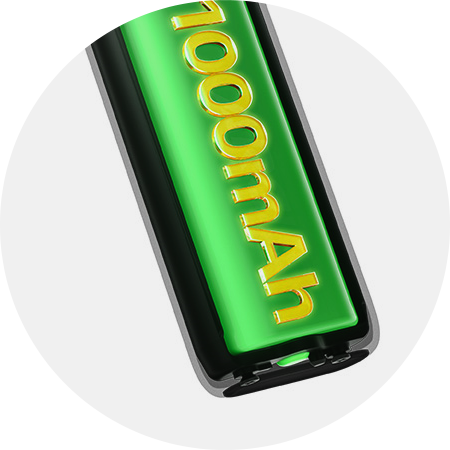 S integrovanou baterií o kapacitě 1000mAh Vás čeká dlouhé vapování na jedno nabití. K rychlému a pohodlnému nabíjení slouží integrovaný USB-C port umístěný ve spodní části e-cigarety.