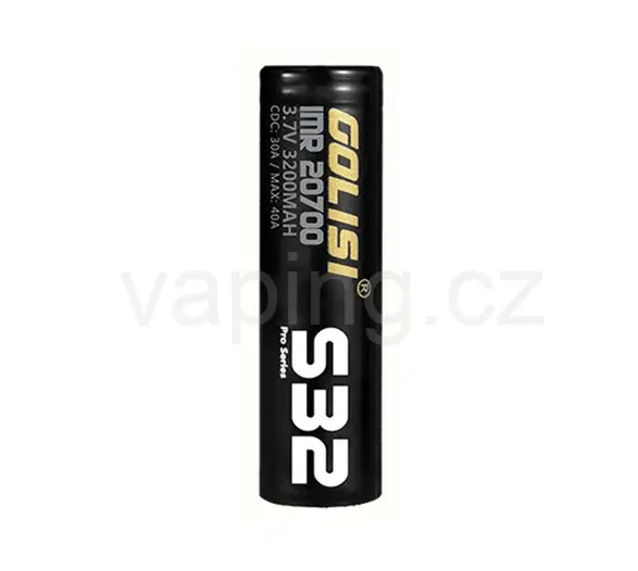 Nová kvalitní baterie typu Golisi S32 20700 je kompatibilní se všemi mody / gripy se slotem pro baterie 20700. Baterie Golisi S32 nabídne obrovskou kapacitu a efektivní vybíjecí proud, který rozžhaví váš atomizér rychleji, než kdykoliv předtím. Baterie zároveň drží svou kapacitu mnohem lépe, než předchozí články 18650. Její kapacita dosahuje 3200 mAh a konstantní vybíjecí proud činí 30 A. Baterii lze použít převážně pro nízkoodporový vaping. Díky svému CDC cyklu (cyklus nabíjení/vybíjení) pracuje s konstantním vybíjecím proudem i na 40% své kapacity.