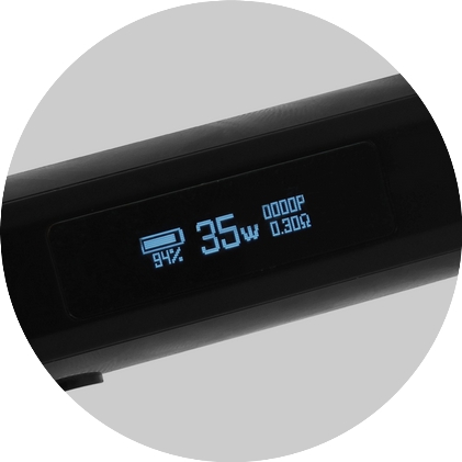 V boční části e-cigarety Vinci 3 se nachází velký a přehledný displej. Přímo na displeji se potom zobrazuje údaj o stavu baterie, nastaveném výkonu zařízení, nebo o odporu tělíska a počtu potahů.