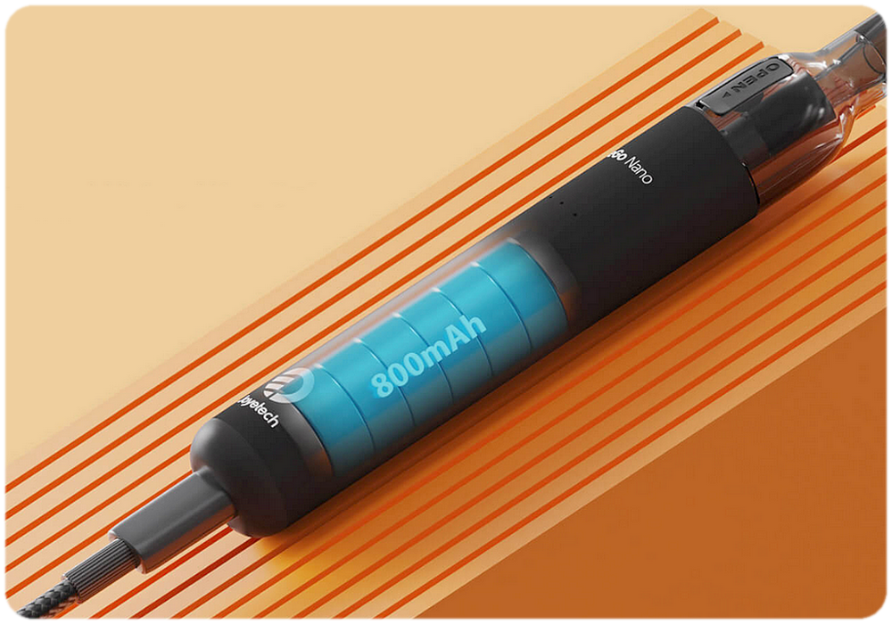V těle e-cigarety na vás čeká integrovaná baterie s kapacitou 800 mAh pro aktivní mnohahodinové používání bez nutnosti nabíjení. Integrovaná baterie se postará také o rychlý náběh žhavení a bezproblémový provoz.
